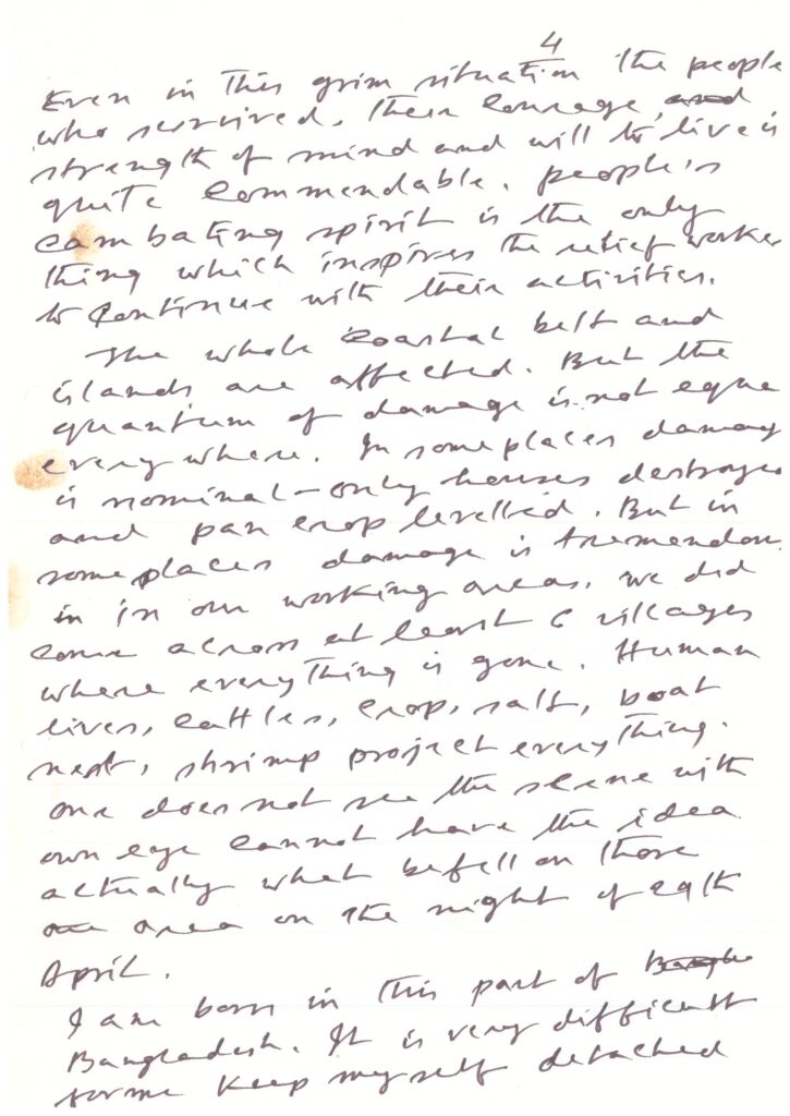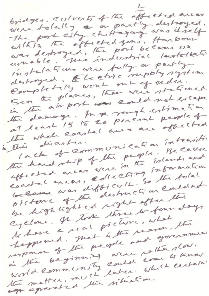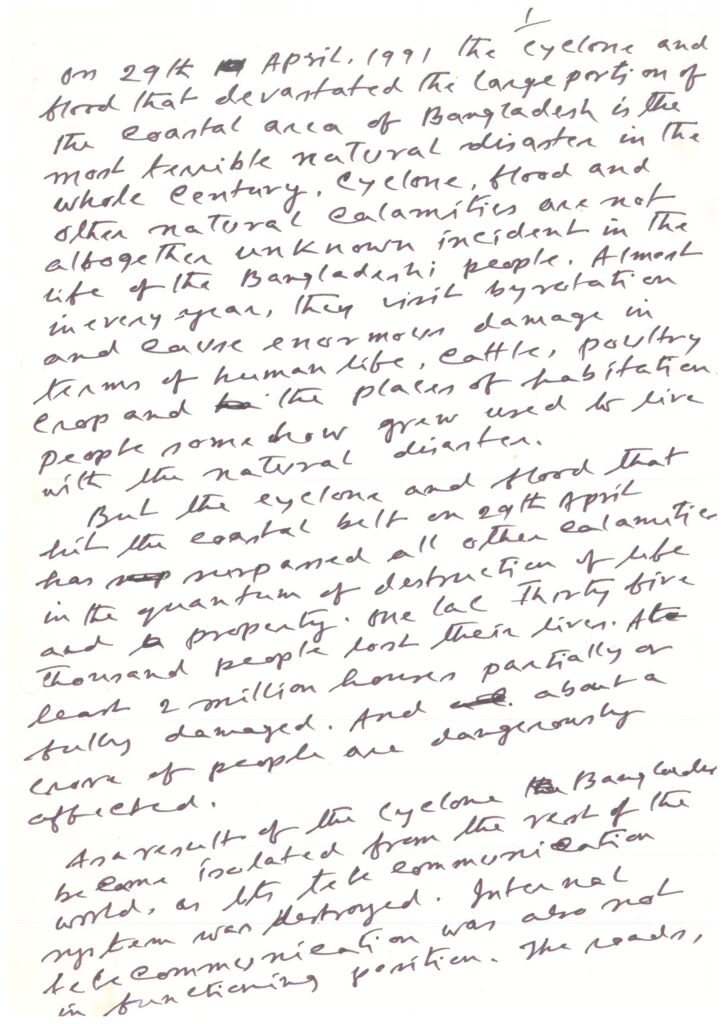 „It is very difficult for me to keep myself detached…“ wrote Ahmed Sofa on May 20, 1991. On April 29, 1991, a devastating cyclone had struck the southeast coast of Bangladesh, claiming more than 135,000 lives. On May 8, the writer had already set off with a group of young people to provide assistance on the ground.